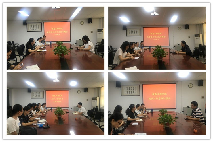 为深入贯彻落实党的十九大关于从严治党要求,充分发挥学院基层党组织的战斗堡垒作用和党员干部的先锋模范作用,7月4日下午,信工学院在学院会议室召开党建工作汇报会,参加会议的有团委书记张娟老师、统战委员李磊老师、负责工会和纪委工作的崔晓宁老师以及各基层党支部书记,党总支王新平书记参加会议并听取汇报。