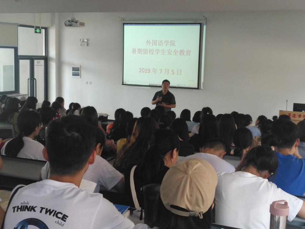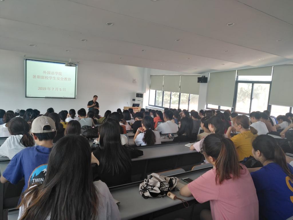 为了加强学生安全教育,给暑期留校学习学生营造一个安全、稳定的学习环境,7月5日上午9:00,外国语学院在1-208对暑期留校学生进行了安全教育。外国语学院留校学生辅导员全部参加,会议由党总支石皓召书记主持。