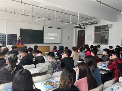 班会活动上,辅导员与学生使用问答式、互动式等形式,根据大学生的吸烟状况,积极帮助抽烟同学剖析抽烟行为的深层原因,并讲述了抽烟行为所带来的不良影响。此次班会利用多媒体手段,图文并茂地讲述了烟草所含的有害物质以及二手烟的危害,让大学生认识到吸烟不仅影响自身的身体健康,也会给家人和身边的朋友带来危害和困扰。