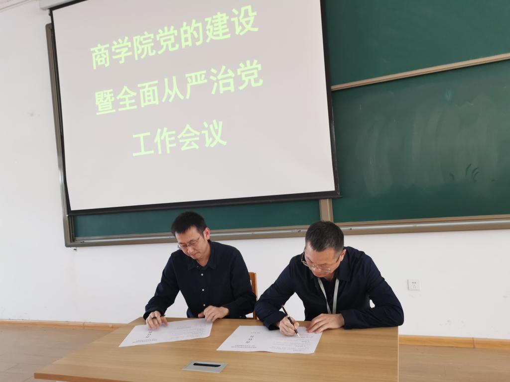 随后,学院领导班子与基层党支部书记和教研室主任签署2021年党风廉政建设责任书,全体教职工签署了廉洁自律承诺书。