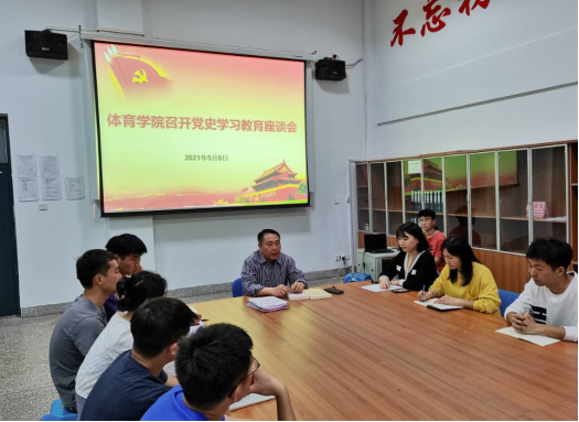 为深入学习贯彻党的发展历程和主要精神 ,扎实推进党史学习教育。根据总支学党史工作安排,体育学院党总支于5月6日下午在体育馆会议室召开党史学习教育座谈会。党总支书记杨明志书记、党务专员康晓晨老师及学生党支部第十二期、十三期发展对象参加了此次会议。会议由党总支书记杨明志主持。