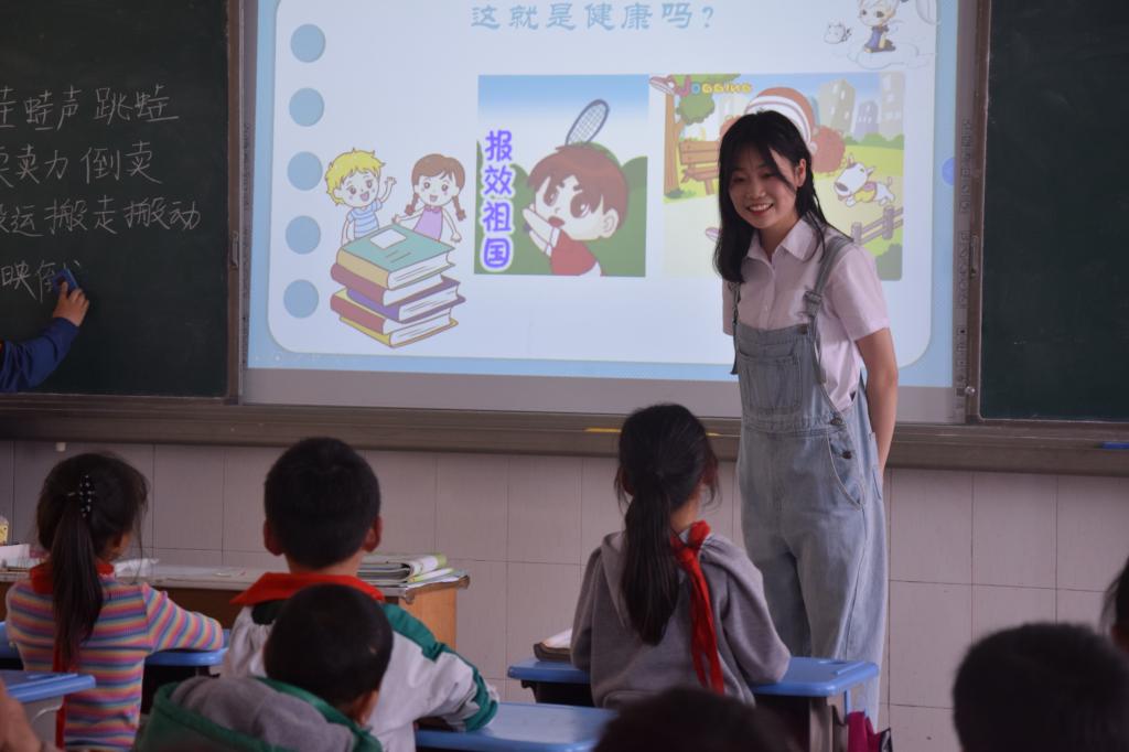 支教志愿者提前一周备课做PPT,支教内容有:小学英语课堂、小学生心理健康知识、故事分享、课外篮球课等。支教课堂上,小朋友们都积极的配合支教老师们,积极回答老师提出的问题,支教老师会给学生分发一些糖果或笑脸徽章作为奖励。课下,支教老师与小朋友们打成一片,一起做游戏、一起打篮球等,氛围融洽欢快,支教活动在孩子们的欢声笑语中圆满结束。