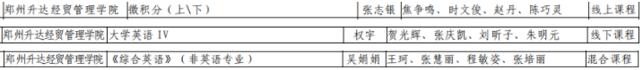 近日,河南省教育厅下发《关于公布第二批河南省一流本科课程认定结果的通知》(教高〔2021〕174号)文件,基础部《微积分(上/下)》、《大学英语IV》和《综合英语》(非英语专业)3门课程获得省级一流本科课程认定。其中,基础部张志银老师负责的《微积分(上/下)》为省级线上一流课程、权宇老师负责的《大学英语IV》为省级线下一流课程,吴娟娟老师负责的《综合英语》(非英语专业)为省级混合一流课程。