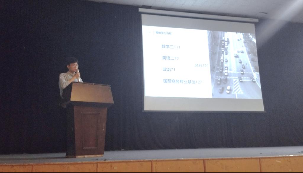 在分享过个人考研经历后,三位准研究生也分别与在座的同学进行了现场互动。同时,针对同学们的疑问总结了一些关键点:要自信,但也不要盲目自信,选择学校时一定要选择与符合自身实际情况的学校;政治、英语要坚持积累和记忆;要沉下心来,学透课本,做透真题,并在热心解答同学们的提问后送上了真挚的祝福。