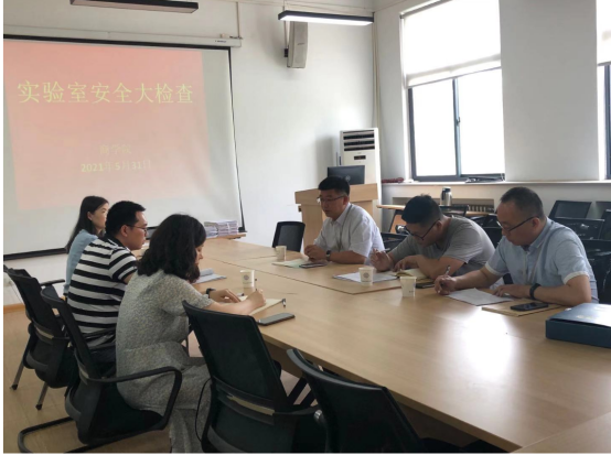 2021年5月31日上午,实训处副处长李保华,科长毛瑞金和职员张翔老师莅临商学院,在商学院315会议室对我院实验室安全进行检查指导。商学院副院长白朋飞,教学秘书马巧丽,实验室主任王延娜参加了本次检查。