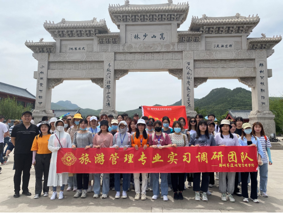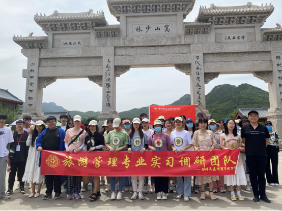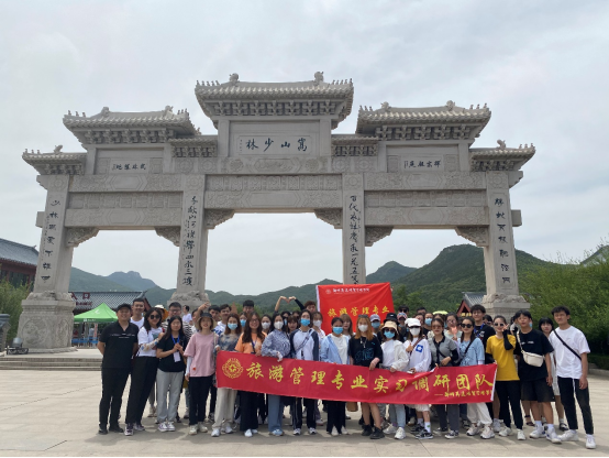 为丰富旅游管理专业学生的专业阅历,增强和巩固同学们专业理论知识,本学期旅游管理专业学生实习工作的开展以专业实践教学体系标准为依据,结合人才培养方案课程设置和学生考证需求,丰富课内实训内容,将校内外实践有机结合。管理学院旅游管理专业的2018级旅游管理本科1、2班及2020级旅游管理专升本班共三个班的同学,在李裔辉老师、黄晓丽老师、王建平老师和梅华老师的带领下,于2021年5月29日前往登封少林寺、嵩阳书院进行了专业实习。