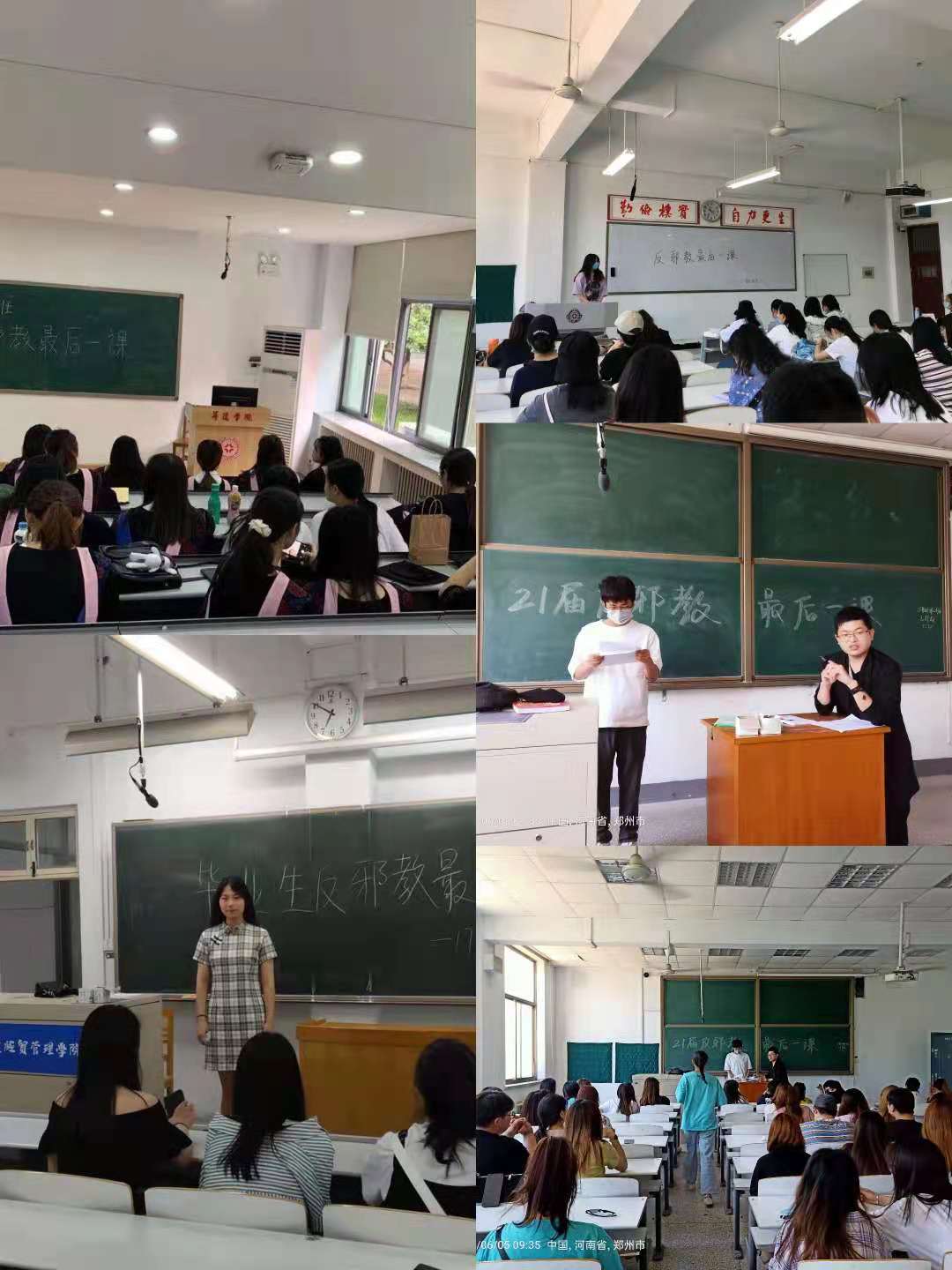 本次 “反邪最后一课”,各毕业班辅导员利用毕业生返校时机,认真准备反邪视频和案例等材料,在各自班级向毕业生再次宣传了解宗教与邪教的区别,邪教蛊惑、蒙骗他人、发展、控制成员、危害社会的手段,让同学门知道邪教是非法的组织,同时各班辅导员认真系统地介绍了抵制邪教的方法,告诉我们的学生反对邪教,关乎我们周围亲人朋友的切身利益,无论在人生任何阶段,都要懂得远离邪教,筑牢反邪教的思想意识。