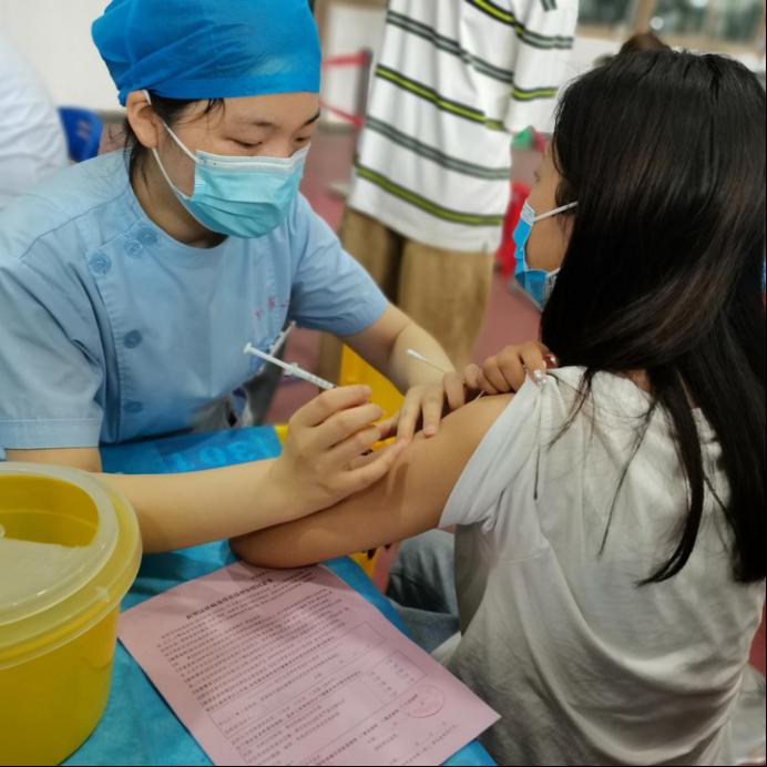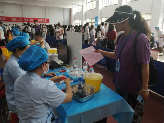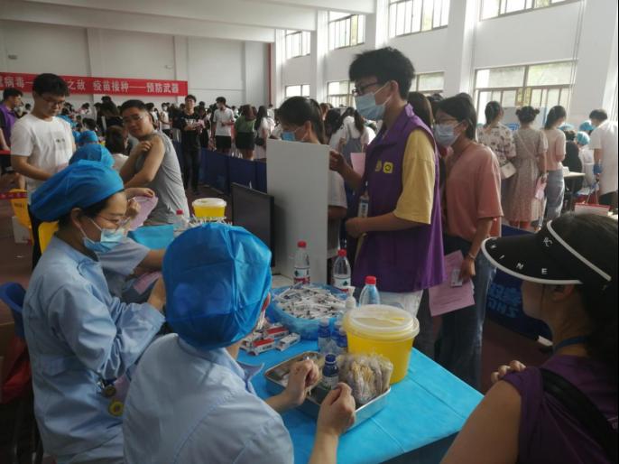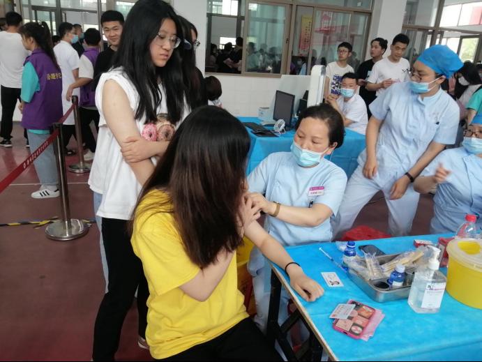 同时也有青年志愿者在现场协助,他们各司其职,积极的引导学生们填写表格、排队接种,并耐心的帮助学生们解答相关问题,使得接种流程高效快捷。志愿者们还热情的带领接种完成的同学进入观察区,贴心为他们安排座位,并保持微笑示人,大大缓解了同学们紧张的心情。