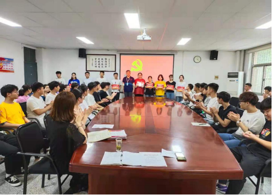 为隆重庆祝中国共产党成立100周年,进一步发挥广大党员的先锋模范作用,增强党性修养,按照校党委的要求,信工学院党委于2021年6月17日下午1点在资讯楼104会议室举行了“新党员入党宣誓仪式”。党委张现水书记、学生党支部书记苗淑娟老师、袁奉亚老师、厉祎老师和55名新党员参加会议。