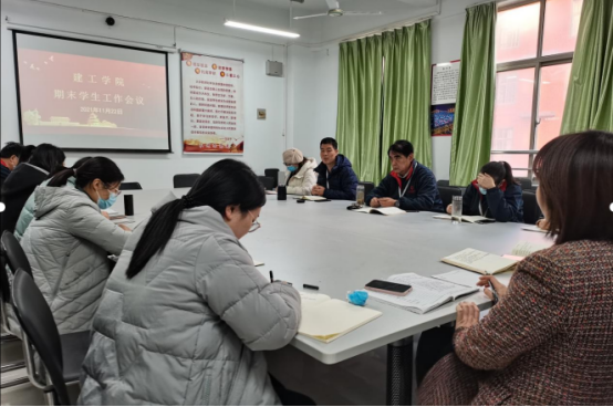 为进一步做好学生教育和管理工作,维护学院正常的教学和生活秩序,建工学院于11月22日上午召开了期末学生工作会议,建工学院院长杨开云、党委书记韩炎涛、副书记兼副院长高燕、教学秘书齐雷、行政秘书兼团委书记赵杨、各教研室主任和全体辅导员参加会议。会议由党委书记韩炎涛主持。