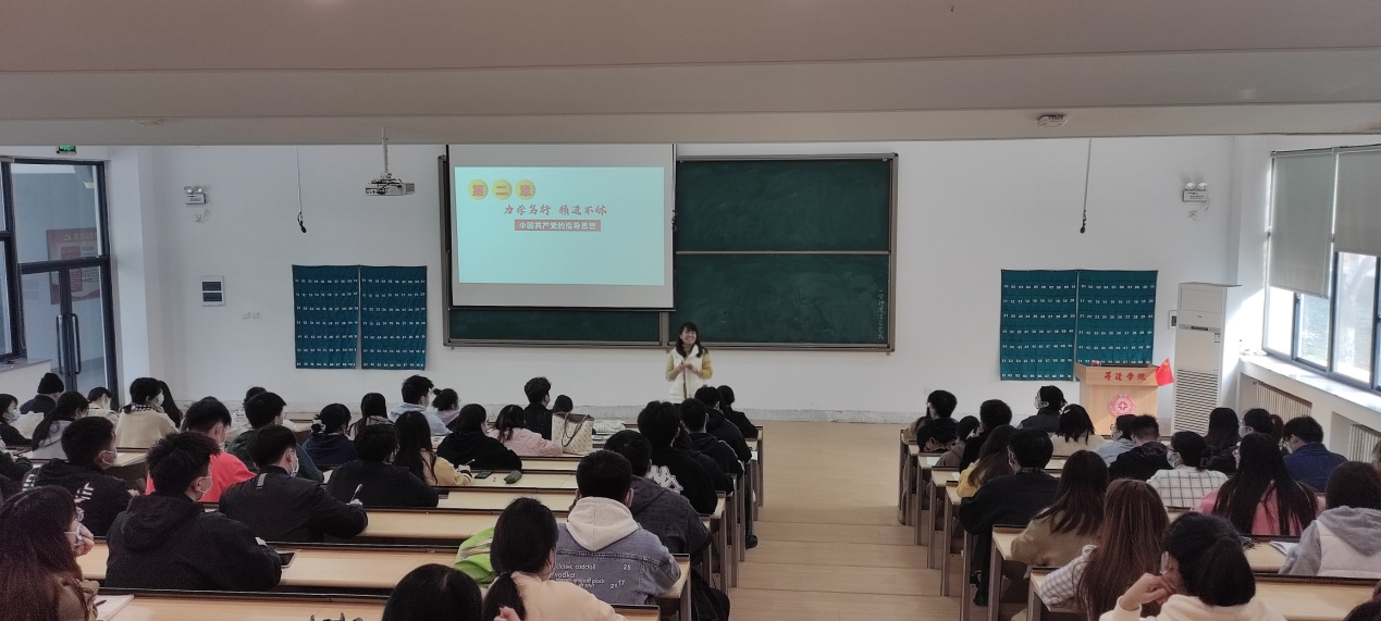 车伟娜老师以《力学笃行 精进不休——中国共产党的指导思想》为主题,从发展历程、内涵、内容等几个方面深入浅出地进行了讲解,回顾了中国共产党走过的百年辉煌历程,深入感悟了共产党人为中国人民谋幸福、为中华民族谋复兴的初心与使命。随后她重点讲述了习近平新时代中国特色社会主义思想的巨大价值,强调青年学生要深入学习习近平新时代中国特色社会主义思想,并将其作为个人行动指南,不断锻炼品德修为、提升综合能力,为实现中华民族伟大复兴的中国梦而不懈奋斗。