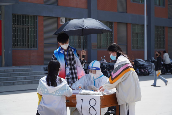 建工学院志愿者吴霆,除了布置核算检测的现场、维持核酸检测现场秩序,同时也服务于核酸检测的医护人员。最近几次核酸检测天气较热,为让医护人员有个相对舒适的环境,他一直站在旁边为其撑起遮阳伞,从而保证了检测效率。该生还负责检测后现场的打扫任务。他说:“一切工作都是为了给核酸检测工作保驾护航。”