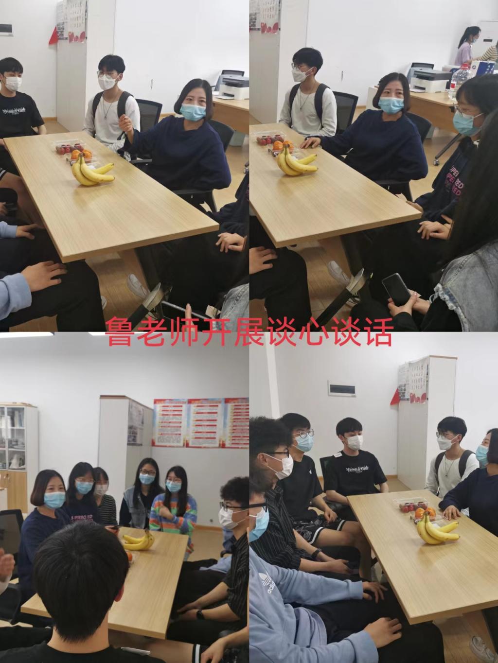 返校后,鲁老师深入宿舍、分批次找学生谈心谈话、关注班级学生心理状态,不定时在操场上开展一些有意义的舒压小活动,纾解学生因为管控带来的焦虑和烦躁,在一定程度上缓解了学生的不良情绪,为后续学院甚至学校的学生管理工作提供了更多的支持。