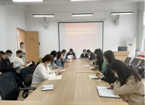为进一步推动我院2022届毕业生顺利就业,明确人生目标和规划,更好提升求职竞争力,同时满足毕业生的个性化需求,商学院根据学生自身优势、职业目标、专业背景、个人性格等开展个性化就业指导服务活动。4月8日下午,商学院在2号教学楼315会议室召开毕业生个性化就业指导团队部署会议。商学院党委书记郭峰、行政秘书郗艳花以及全体辅导员出席了会议。