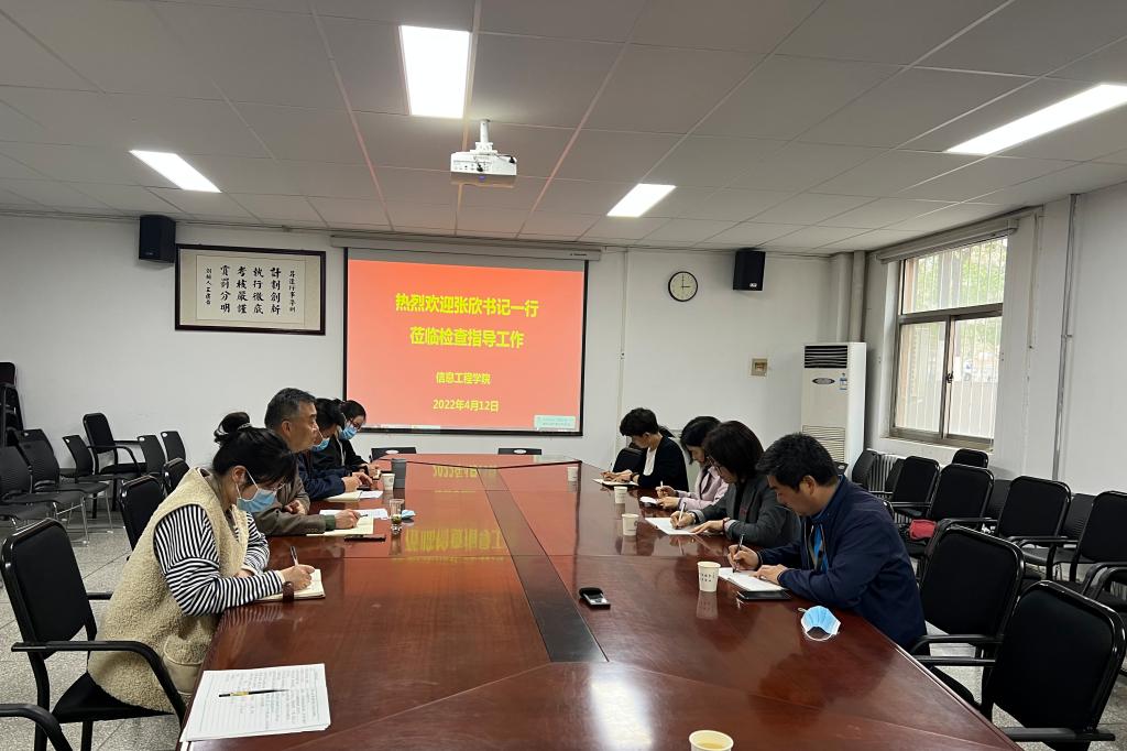 4月12日上午,校党委副书记、纪委书记张欣一行莅临信息工程学院,检查指导疫情防控工作并慰问全院师生。信息工程学院党委书记张现水,行政秘书王崇及辅导员代表参加会议。