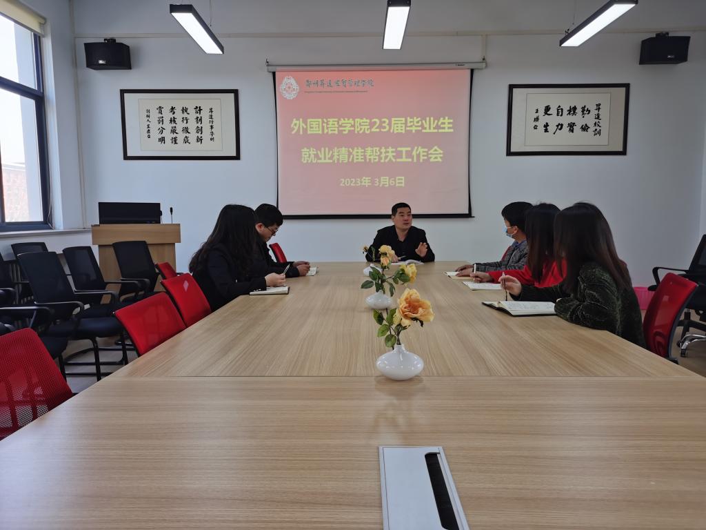 2023年3月6日,外国语学院在教一楼206会议室召开了2023届毕业生精准就业帮扶工作专题会议。外国语学院党委书记石皓召同志主持会议,2023届全体毕业班辅导员参加了此次会议。