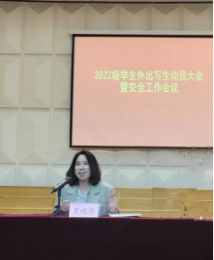 3月24日下午,艺术学院在音乐厅召开2022级学生外出写生动员大会暨安全工作会议。艺术学院院长吴柏林、艺术学院党委书记张小雁,副院长夏瑞芳、教学秘书贠雯、行政秘书尹红艳、七位专业老师、三位带班辅导员、以及2022级全体外出写生学生参加了本次会议,会议由副院长夏瑞芳主持。