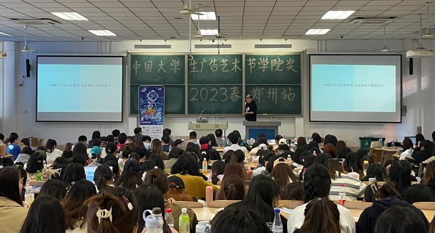 2023年3月28日下午,2023春季中国大学生广告艺术节学院奖全国高校巡讲•郑州站在郑州大学南核心教学区1号楼隆重举行,我院广告学专业59位学生在教师靳奥、孙晓晴的带领下赴郑大参加了此次学院奖巡讲盛典。