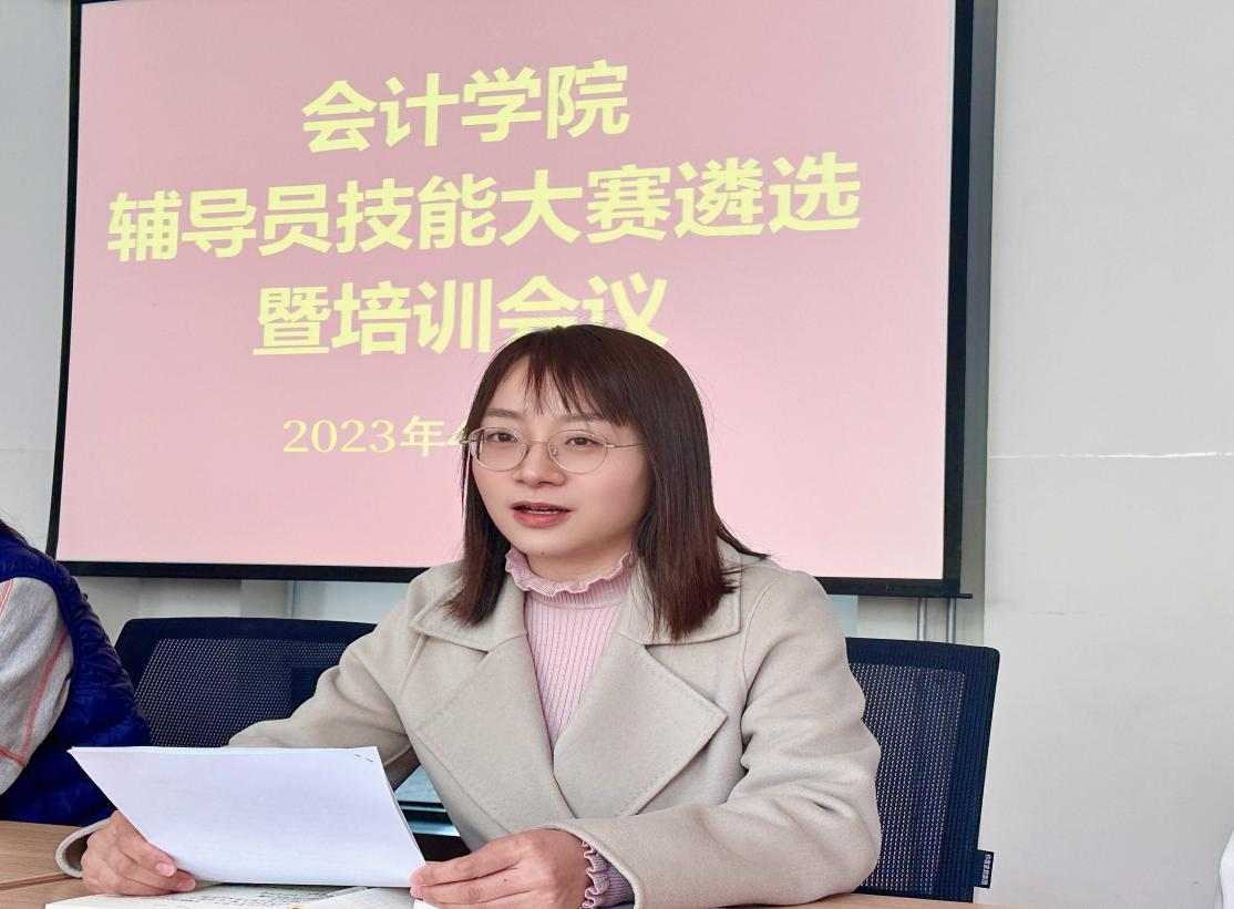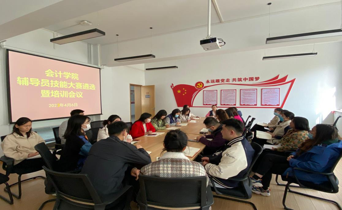 为深入学习贯彻党的二十大精神和习近平新时代中国特色社会主义思想,贯彻落实全国教育大会、全国高校思想政治工作会和学校思想政治理论课教师座谈会精神,根据学校辅导员素质能力大赛工作要求,会计学院于2023年4月6日下午,在四号楼116会议室召开”会计学院辅导员素质能力大赛遴选暨培训会议”。会议由会计学院党委书记张蕾主持,全体辅导员参加。