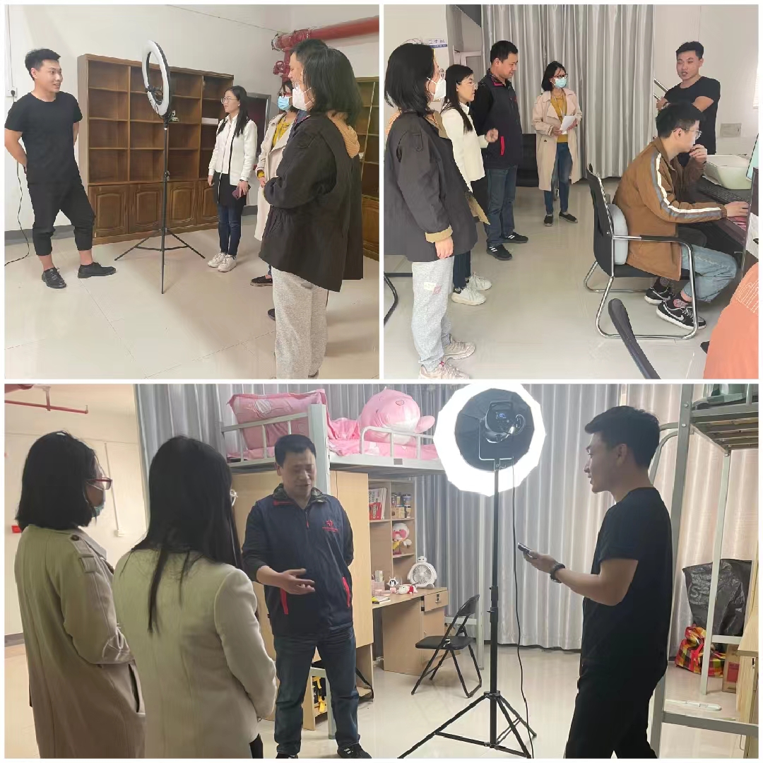 4月14日商学院党委书记郭峰、行政秘书郗艳花、教学秘书马巧丽、市场营销教研室教师侯亚茹参观走访了2017届营本2班李依贝的郑州五域新势力网络科技有限公司。