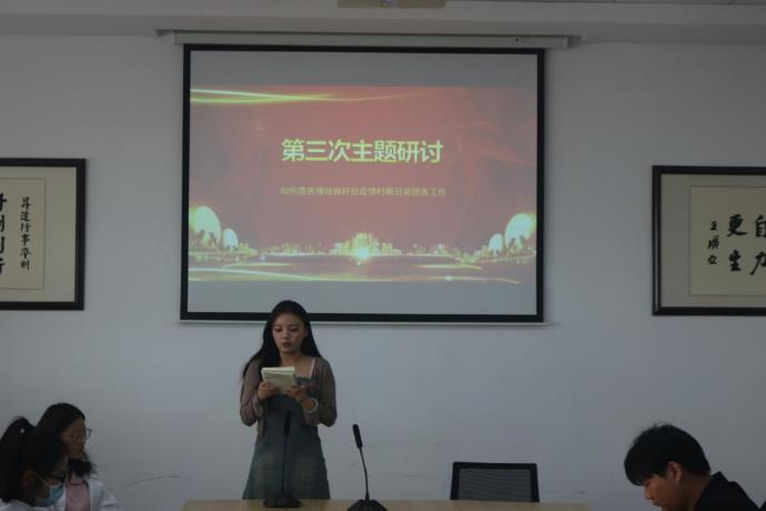 为提高团支书工作效率和工作能力,加强团支书的思想建设,管理学院于2023年4月20日中午12点40在管理学院二号楼209教室举行团支书第三次主题研讨活动,活动主题为“如何提质增效做好后疫情时期日常团务工作”。参会人员有校团委组织部副部长李禹航、杨航以及管理学院各班团支书。本次研讨活动由团支书代表徐菁主持。