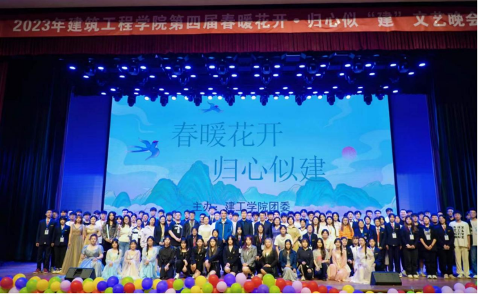 春有约,花不误,岁岁年年不相负!4月20日,建工学院第四届“春暖花开•归心似建”文艺晚会在思源会馆如期举行。出席此次晚会的领导嘉宾有:会计学院党委书记张蕾、校团委副书记李雷、建工学院院长杨开云、建工学院党委书记韩炎涛、建工学院团委书记赵杨、建工学院辅导员老师以及全院1800余名学生共同参加此次活动。