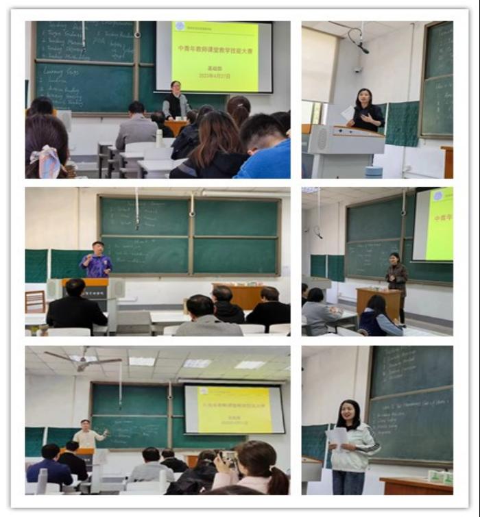 本次大赛选手通过从各教研室随机抽签的方式产生,教学内容现场指定,每位选手有30分钟准备时间。选手的个人展示分为教学设计和教学示范两个部分,限时10-15分钟。该形式对选手的心理素质、教学能力和现场应变能力均是巨大的挑战。权宇、赵丹、石鑫、陈龙、普晖、刘银萍、李晓婕和周晓扬等8名选手参加了大赛,参赛选手们在15分钟内展示了教学设计和教学方法,并与在场教师进行了丰富、有趣的现场互动,充分展现了基础部教师的风采。