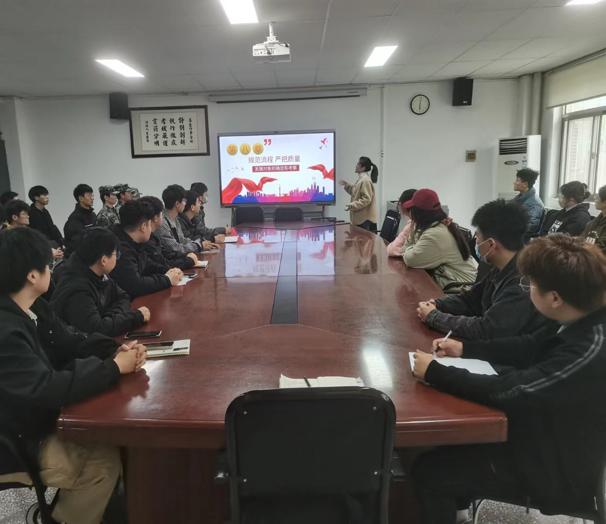 为进一步规范发展党员工作,严肃发展党员工作纪律,保证新发展党员质量和党员队伍的先进性,4月24日下午,信工学院电子信息工程专业学生第一党支部书记杜自平老师在资讯楼104会议室,为第十七期发展对象培训班学员讲授党课。党课的题目是《规范流程 严把质量——发展对象的确定和考察》。