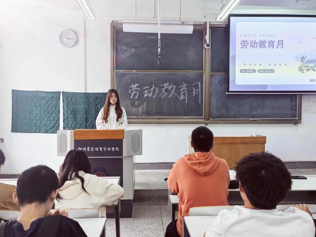 会后,文法学院各班级召开劳动教育月主题班会。班会主要由辅导员、班长以PPT的形式向大家传达会议内容,号召学生们积极行动,结合本班实际情况,组织开展重点突出、内容丰富、形式多样、切实可行的劳动教育实践活动。
