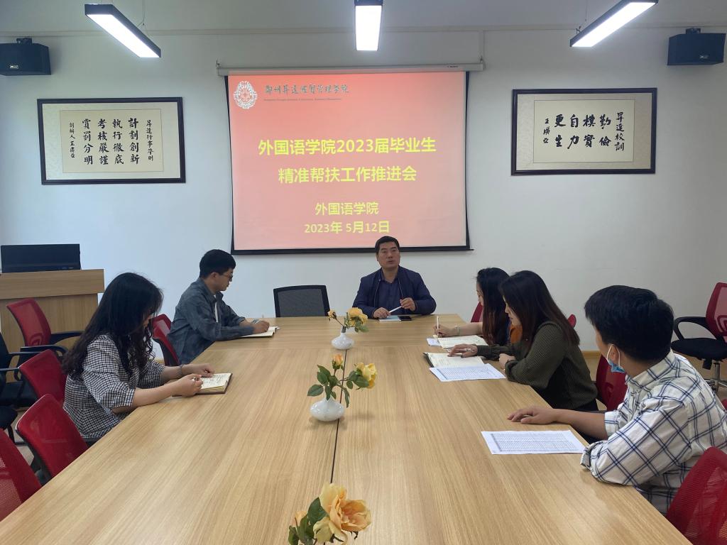 为抓住当前就业黄金期,强力推进2023届毕业生就业工作,2023年5月12日上午,外国语学院召开2023届毕业生精准就业帮扶工作推进会,会议由党委书记石皓召主持,全体23届毕业生辅导员参加。