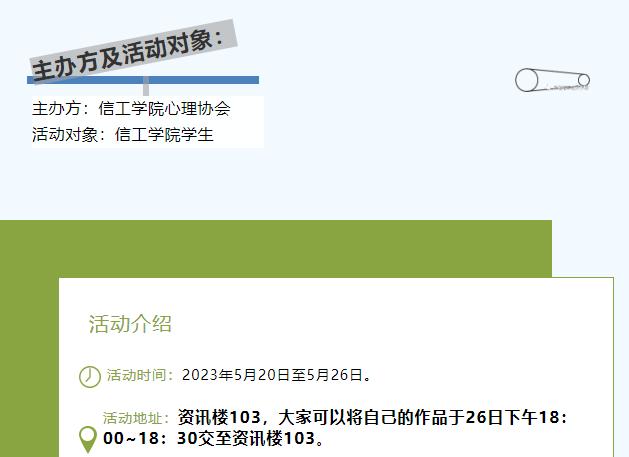 为提升广大学生的劳动积极性,锻炼动手实践能力,除了日常的一分钟环保、工区打扫等,我院组织各项创新实践活动:22专升本同学自发进行义务浇水、摆放车辆、捡白色垃圾等系列志愿服务;信息工程心理协会面向院内全体学生举行的手绘海报比赛,也即将进入评选阶段;22级大一新生在课余时间利用可循环使用材料做出精美的手工艺品。