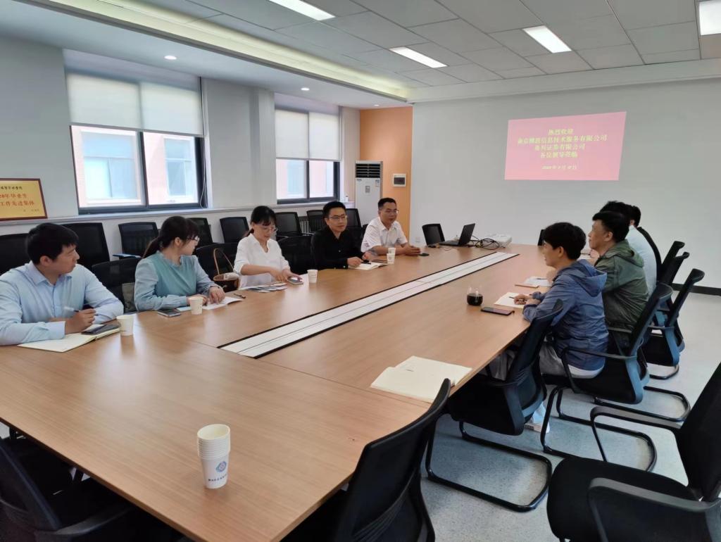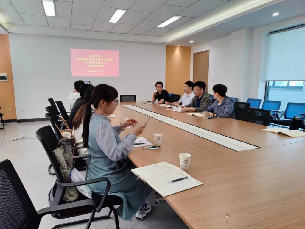 何伟对李泽楷、李慧芳一行来校交流指导表示欢迎,并简要介绍了学院毕业生情况,陈庭强交流了学院专业特色和人才培养体系等。李慧芳从公司文化、业务状况和人才培养等方面介绍了南京博涯信息技术有限公司的基本情况。双方围绕人才培养、就业招聘、实习实践等方面进行深入沟通与交流,共同推动和开展更加广泛的校企合作。