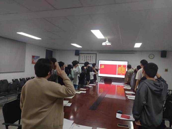 接着,由支部组织委员韩志珂带领全体党员,面向鲜红的党旗,庄严地向党旗宣誓。