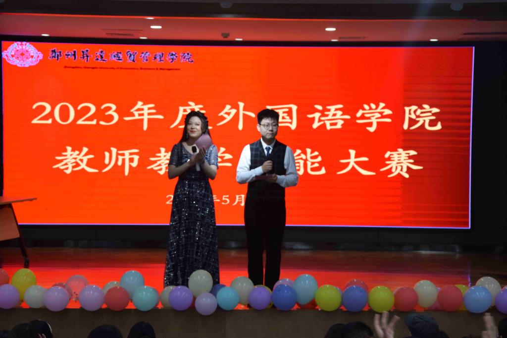 为加强教师队伍建设,提高教师的业务水平,2023年5月19日下午,外国语学院在双创大讲堂举办2023年度教师教学技能大赛。本次比赛评委由校质监中心督导叶定国教授、学院督导冯凌琴教授、王婷婷副教授,英语教研室主任熊华霞老师以及日语教研室张彬老师组成,院长崔瑾英教授通过视频方式为比赛致辞。