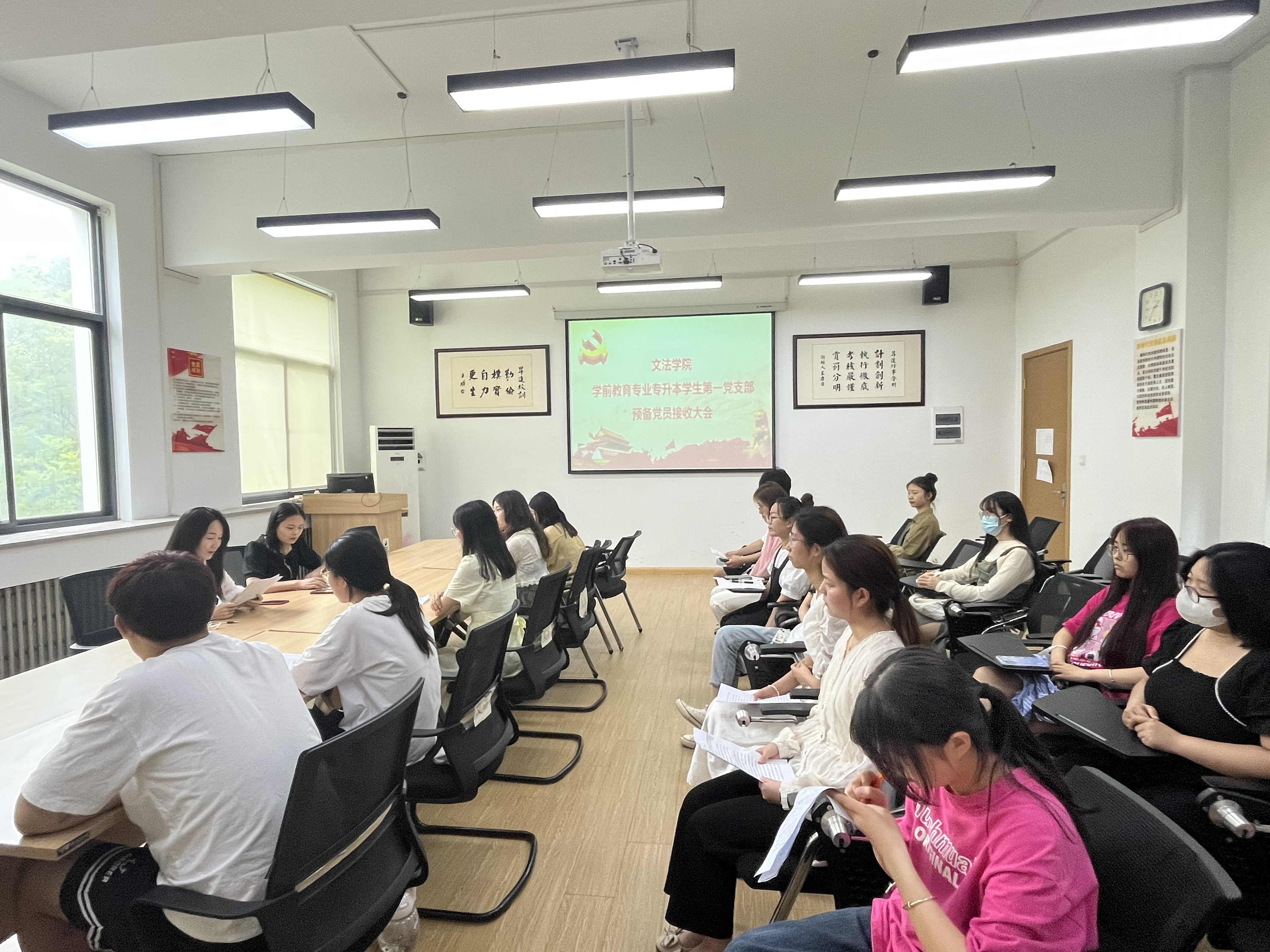 为进一步加强支部队伍建设,增强支部生机与活力,文法学院学前教育专业专升本学生第一党支部根据党员发展工作安排,于5月19日中午在教学1号楼314会议室召开2023年上半年预备党员接收大会。支部全体党员参加,会议由党支部书记刘欣欣主持。