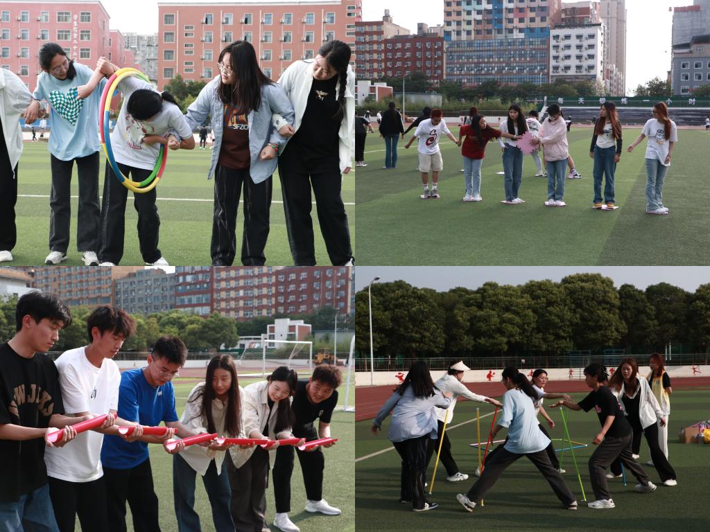 学院22级50位学生代表和各班级辅导员老师参加,趣味心理运动会设五项团体游戏,分别为环环相扣、珠行万里、搭桥过河、三人四足和不倒森林,形式多样、兼顾运动性与趣味性。