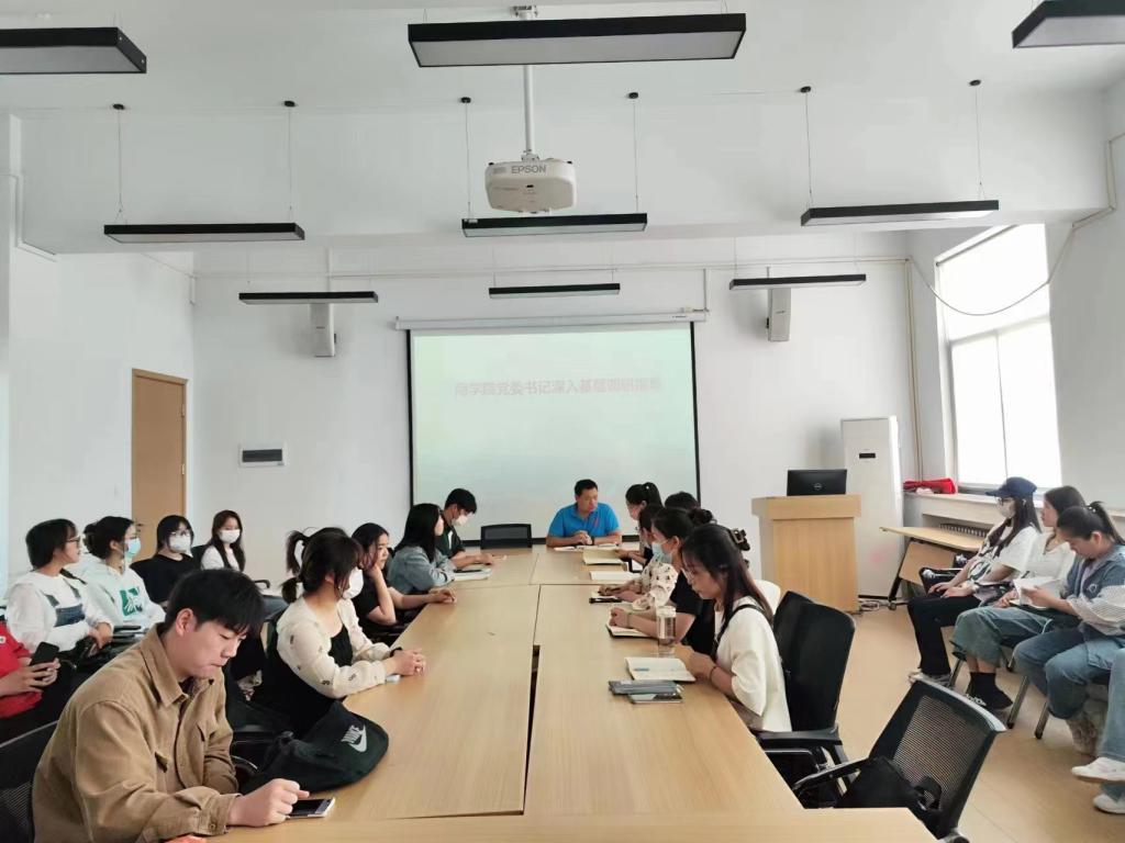 2023年5月24日12时,商学院党委书记郭峰同志深入物流管理学生第三党支部进行调研指导,此次调研座谈于2号教学楼315会议室举行,物流管理学生第三党支部支部书记张莹主持,商学院党委书记郭峰主讲,物流管理学生第三党支部全体党员参加。