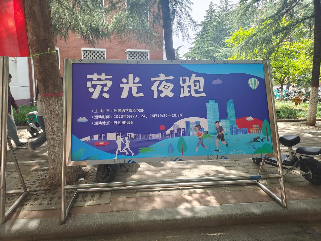 为进一步引导同学们用积极健康的方式释放压力,增强同学们的心理及身体素质,锻炼同学们的毅力、耐力,凸现当代大学生的青春风貌,外国语学院团委心悦部于5月23日、5月24日、5月26日晚上七点半到八点半在升达田径场举办了525“荧光夜跑”活动,升达全校学生积极参与本次活动。