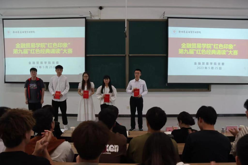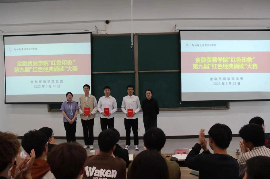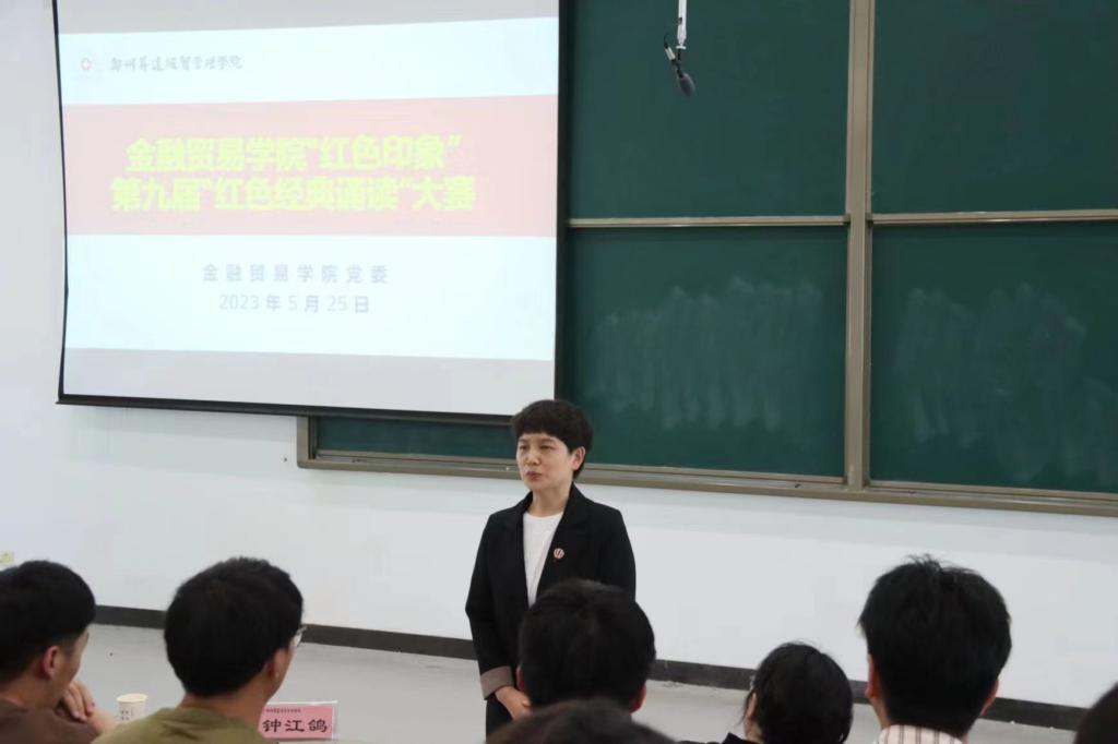 为进一步学习革命文化和红色精神,坚定理想信念,不断提升我院学生精神文化修养及思想道德素质,加强校园文化建设。5月25日,金融贸易学院在3号楼107教室举办第九届“红色经典诵读”活动。担任本次活动评委的有金融贸易学院党委书记钟江鸽同志,党委委员、组织委员王娟老师,马克思主义学院闫帅老师、党委委员、统战委员张阳老师、党委组织员武世鹏老师。
