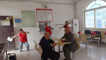 经过一段路程,我们到达龙湖敬老院。我们先到达敬老院的餐厅,看见许多爷爷奶奶慈祥的脸庞,我们与爷爷们进行谈论交流,慰问他们的生活情况,陪他们说说日常,爷爷们都露出开心的笑容。在与老人们的交谈中,他们给我们讲他们的年龄与生平经历,志愿者们认真聆听,体会他们的人生经历。