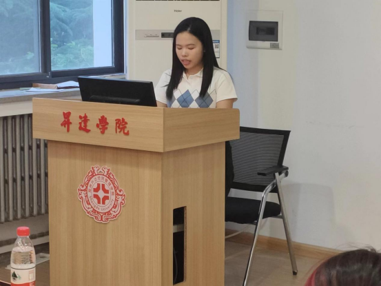 接着是刘喜庆学姐进行发言,她分别从择校,公共课,专业课三个方面进行介绍。她向同学们分享了她在考研途中所用的真题以及各个名师的课程,建议同学们在复习过程中要多背,多复习。