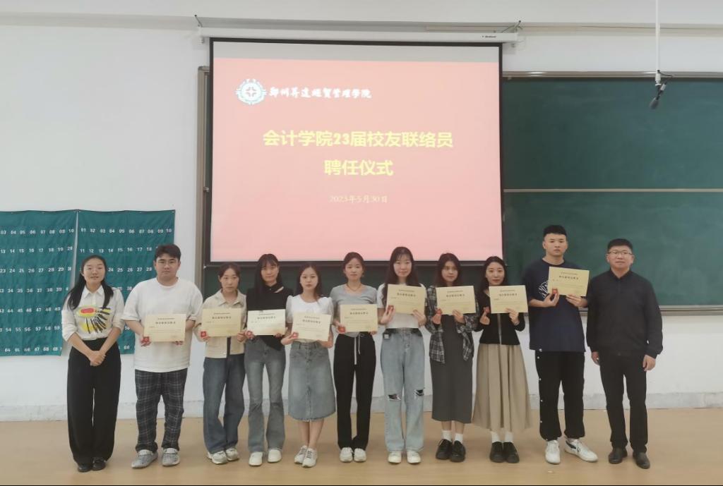 2023年5月30日,会计学院在4-118教室举行2023届校友联络员聘任仪式暨联络员培训会。行政秘书兼团委书记陈刚老师、校友专员王岩峰老师以及2023届全体联络员同学参加了此次会议。