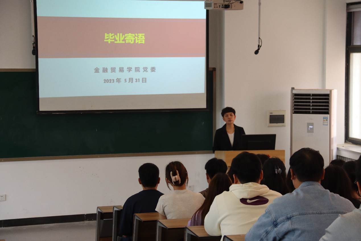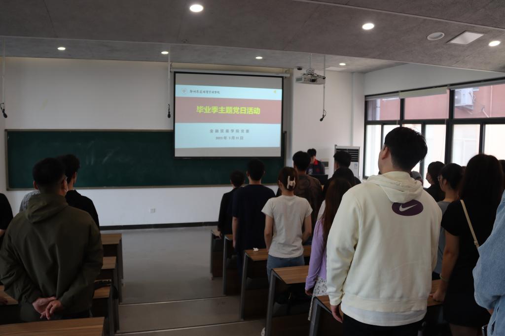 5月31日上午九点,金融贸易学院党委在教学3号楼210室举行2023届毕业生党员主题党日活动。金融贸易学院党委书记钟江鸽和全体毕业生党员参加此次活动。