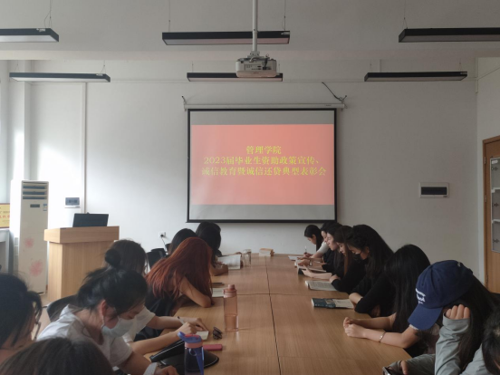 为做好2023届毕业生贷款工作,提高毕业生诚信意识和责任意识,强化资助工作育人效果。管理学院于6月1日在2号教学楼305室召开2023届毕业生资助政策宣传及诚信还贷表彰会。