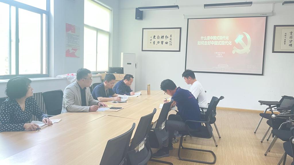 会上,刘晓川领学了《习近平新时代中国特色社会主义思想学习纲要》之三“以中国式现代化全面推进中华民族伟大复兴”,从“什么是中国式现代化”和“如何走好中国式现代化”两个部分详细阐述了中国式现代化的历程、中国式现代化的重要特质以及走好中国式现代化的道路,与会同志围绕学习内容研讨交流。