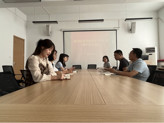 9月14日下午,商学院党委理论学习中心组在院会议室召开集中学习会议,深入学习贯彻习近平总书记关于严肃党内政治生活的重要讲话和重要指示批示精神。会议由商学院党委书记郭峰同志主持,院长白朋飞、党委委员马巧丽、郗艳花、汪俊枝、胡好好、杨利凯同志参加此次会议。