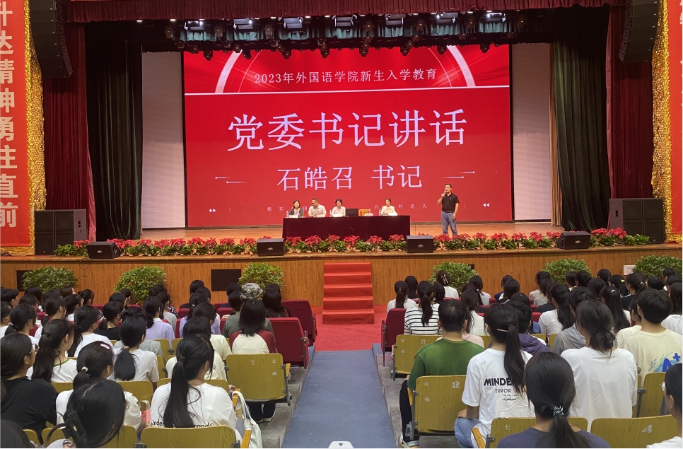 为帮助2023级新生更好地适应大学生活,做好学业规划,树立正确的人生目标,9月15日外国语学院在思源会馆开展了2023级新生入学教育。外国语学院院长崔瑾英教授、党委书记石皓召同志、行政秘书丁玥老师、教学秘书祁胜利老师、教学干事赵艳娜老师及全体新生辅导员参加了入学教育活动。