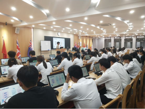 9月18日下午,外国语学院日语专业在实训楼B座的同传翻译实验室开展了2023级新生的专业教育。此次“开学第一课”由日语德语教研室主任张峰老师主持,日语专业2023级的55名新生与日语德语教研室的老师全部出席参加。