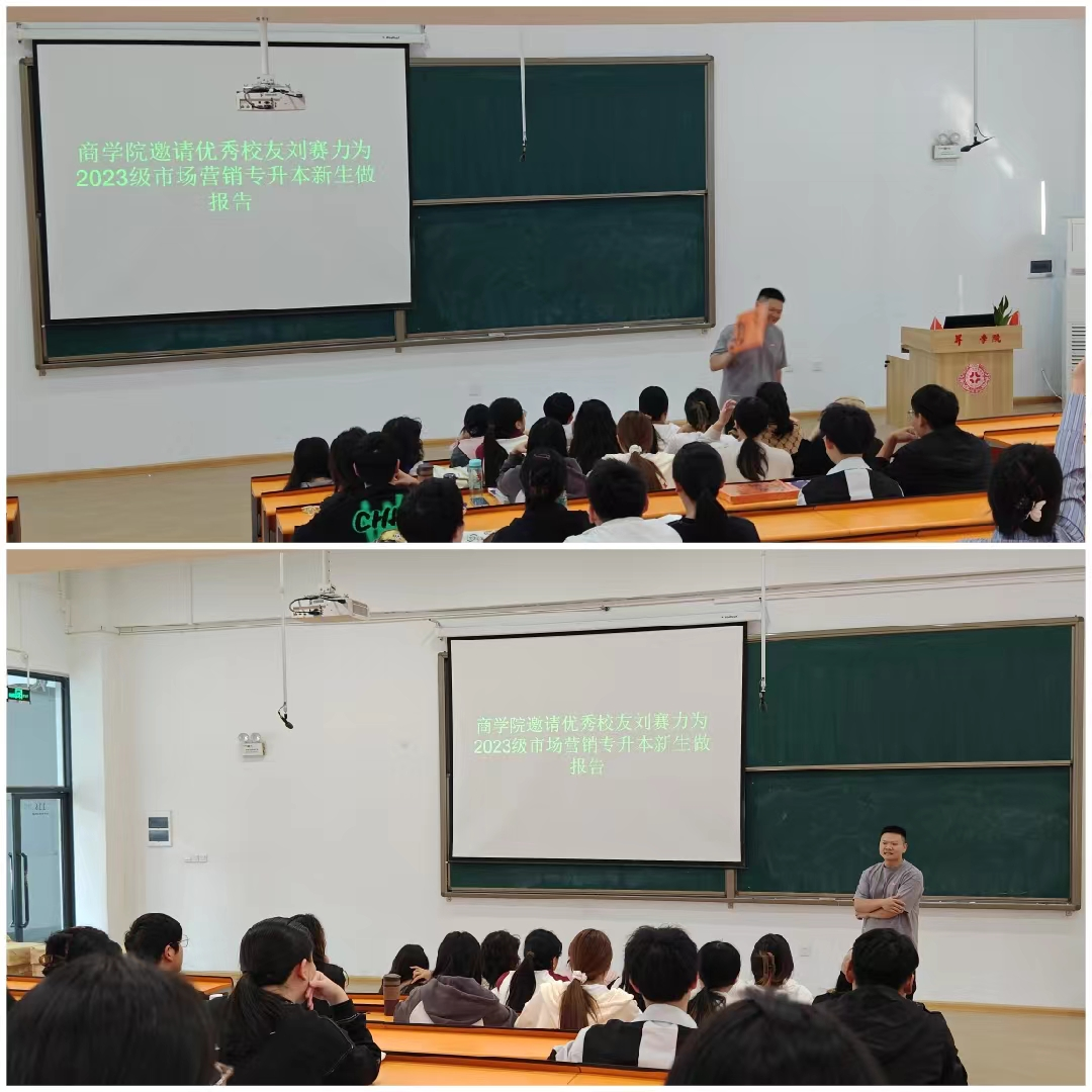 10月23日下午,商学院在教学2号楼116教室举行校友代表成长励志报告会。该会议特别邀请了14届优秀校友刘赛力来为新生做报告,23级专升本市场营销专业的学生以及该专业的辅导员张荣凯老师聆听了本次报告。