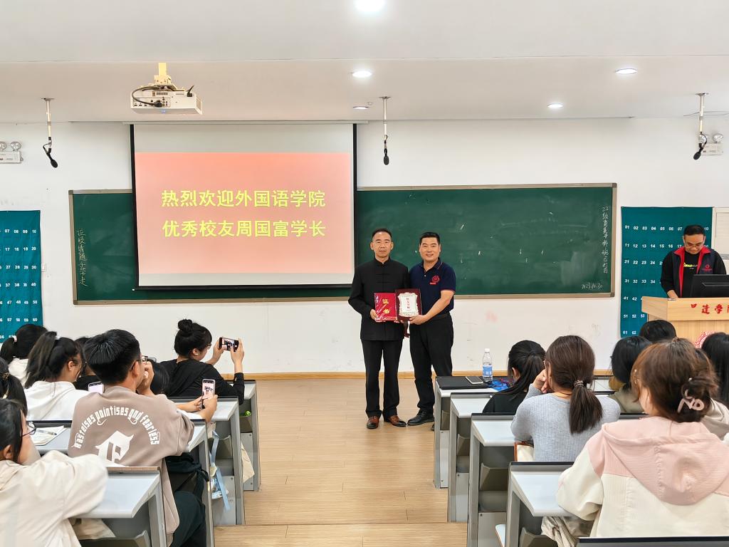 10月31日下午,华亿体育登录建校30周年之际,一场别具一格的交流分享会在教学1号楼109室如期举行。此次分享会邀请了外国语学院94级优秀校友周国富作为主讲嘉宾,他与在场的学弟学妹们分享了自己的人生经历和职业发展心得。